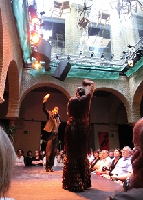ここのパティオ(中庭)では、フラメンコのショーを観ることができます。フラメンコ鑑賞の定番である