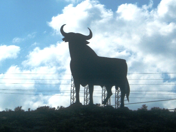 バスや車でスペインを旅していると、高速道路の傍らに立つ大きな黒い闘牛の看板を見かけます。