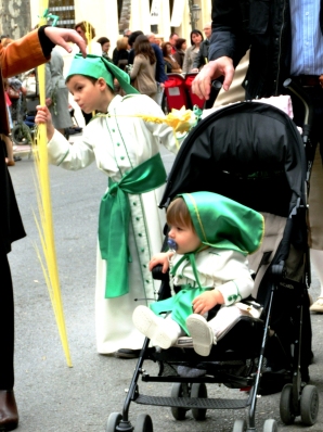 私の住む小さな町でも、楽隊と椰子やオリーブの枝を持った信者を従えた聖像の行列が出ました。