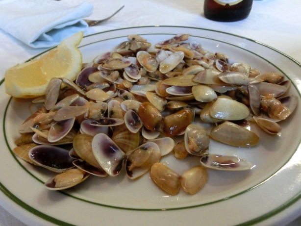 <バレンシアの海でとれるテジーナス/tellinasという小さな貝のソテー。美味です! オススメ! 9ユーロ>