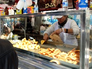 屋台ではかぼちゃの揚げドーナツ以外にポラスやチュロスといった揚げ菓子を売っていますが、