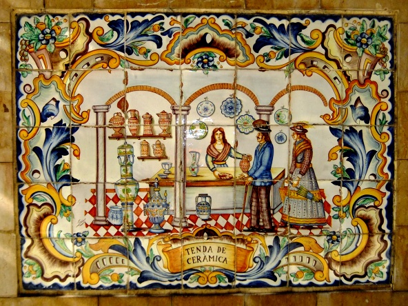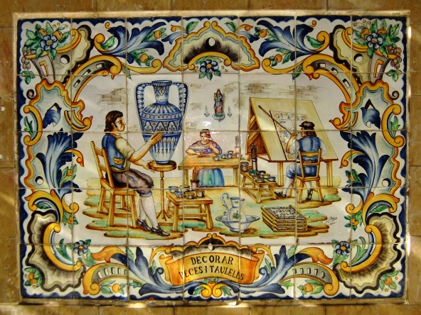 駅から近いブラスコ・イバニェス通りには、昔の陶器の製造方法やバレンシアの風俗を描いたタイル画が