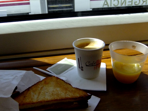 カフェテリアの車両もあるんです。タラゴナとバルセロナの間は一部海沿いを通るので、地中海の眺めも楽しめます。