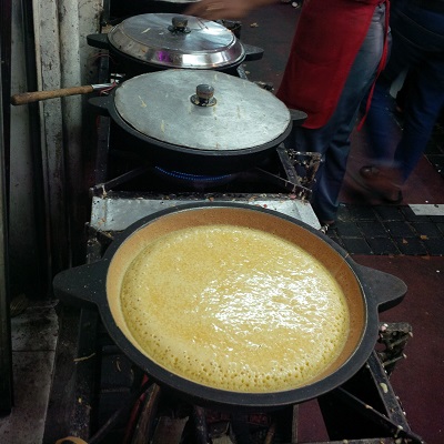 半径25CMぐらいはあります、大きな特製のフライパンで焼き上げます。