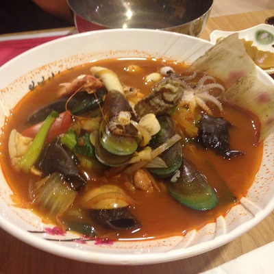 韓国風・中華料理店で食べた海鮮ちゃんぽん@シンガポール。