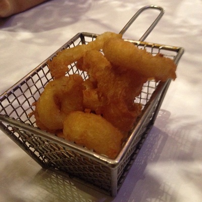 揚げたて熱々で、手で食べるのはつらいがサクサクしててイカはやわらかく美味しい!