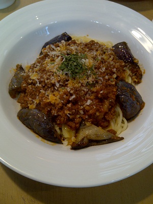サクッとパスタをいただくことにしました、私はボロネーゼ+ナス