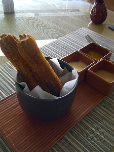 最後にデザート、同僚はチュロス、私はチョコ系のもの。
