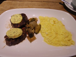 私はカフェのブランチではメニューを決めています・・・Steak&Eggs!