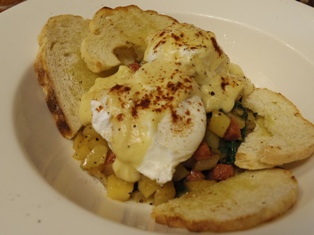 下にはポテトがたくさん、上にはポーチドエッグ。