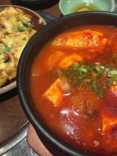まだあります、こちらは豆腐海鮮チゲですね。豆腐も海鮮もたんまり・・・これはアラカルトと同じだと思います。