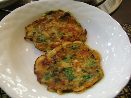 あつあつのミニチヂミが。具沢山でふわふわしてておいしい!!