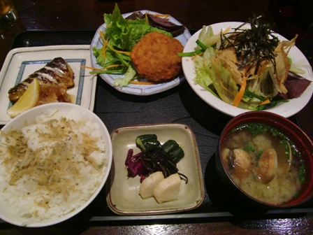 私は豆腐サラダ、さば塩焼き、メンチカツを選択、欲張りなランチですね。