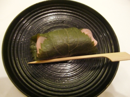 地方によってはこのように桜色のシート状の餅で包んで、さらに桜の葉っぱなんですね。