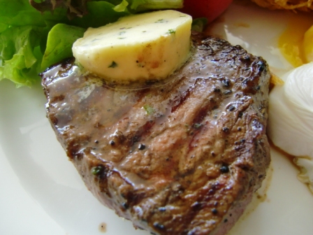 さて、腹ペコの私はランチメニューのガッツリステーキと卵のセットに。