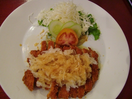 とんかつおろしポン酢定食 68000ルピア(680円ぐらい)