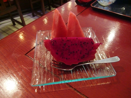 食後はフルーツとコーヒー(ホット・アイス)もついています。