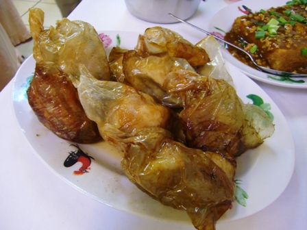 その名のとおりですが、味付け鶏肉を紙につつみ揚げたもの。