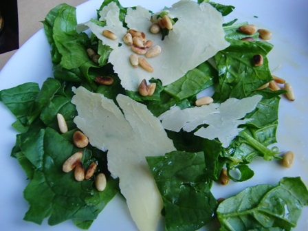ルッコラが品切れ・・・でしたので、かわりにホウレンソウで。