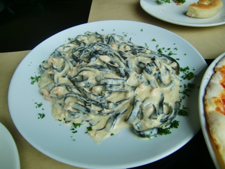イカ墨が練りこんであるパスタにサーモンクリーム。
