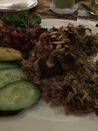 アラブ風ピラフ(ヤギ肉)Kubriとかいう名前だったかと。カレー風味で日本人好きな味。