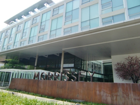 ぶつかるちょうど角にあるMorrisseyというホテルの1Fです。