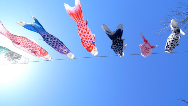 いろいろな鯉のぼりが元気になびく様子は、ずっと見ていても見飽きません(笑)。