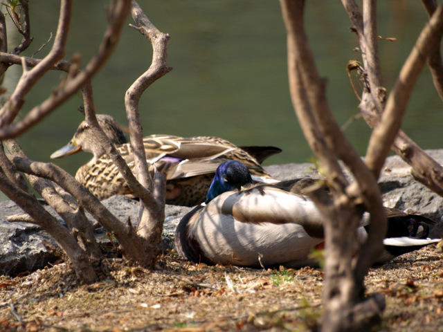 池もあり、間近にカモが昼寝をしているのどかな風景のなか、散歩をしても気持ちがよいです。