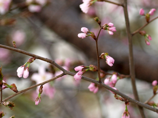 札幌の開花宣言はまだのようですが、市内のあちこちでサクラの蕾がほころび始めました。