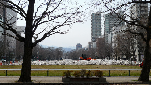 2014年4月7日午後、ようやく札幌の積雪がゼロになりました!
