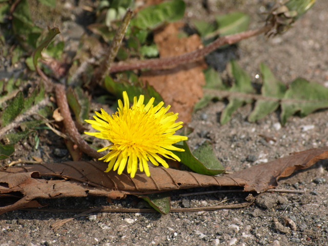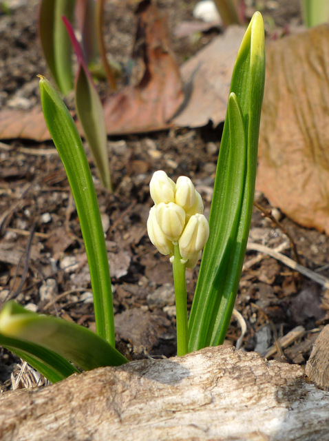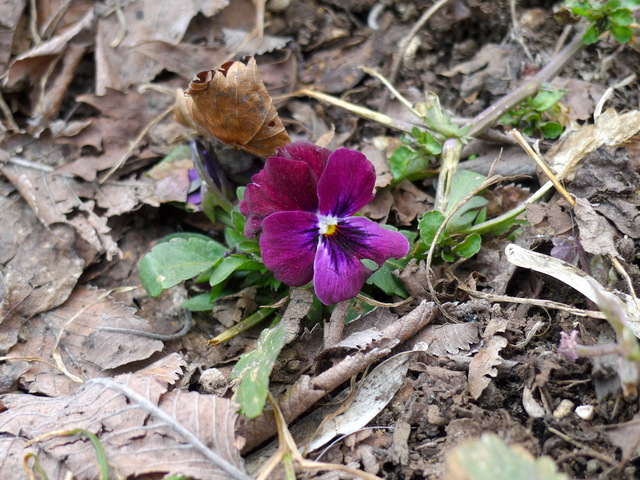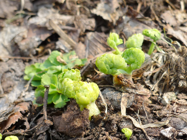 昨年の置き土産、落ち葉を掻き分けて顔を出しています。