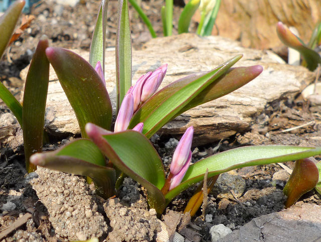 でも、チューリップの芽は寒さに負けず、ずいぶんと育っていました。