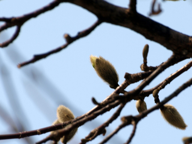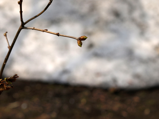 空き地や道路の端には残雪があり、時おり吹く風は冷たいのですが…