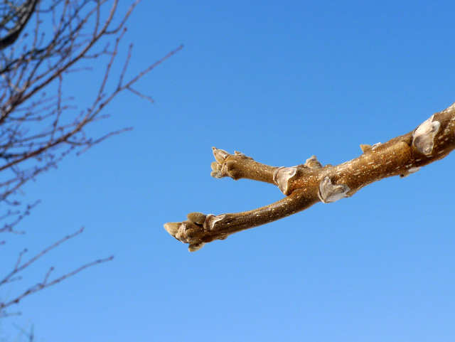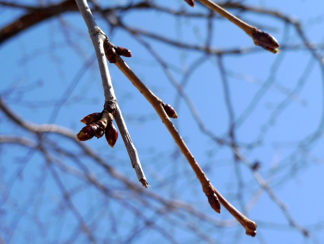 空を見上げると…目に入った木の枝先が膨らんでいます!
