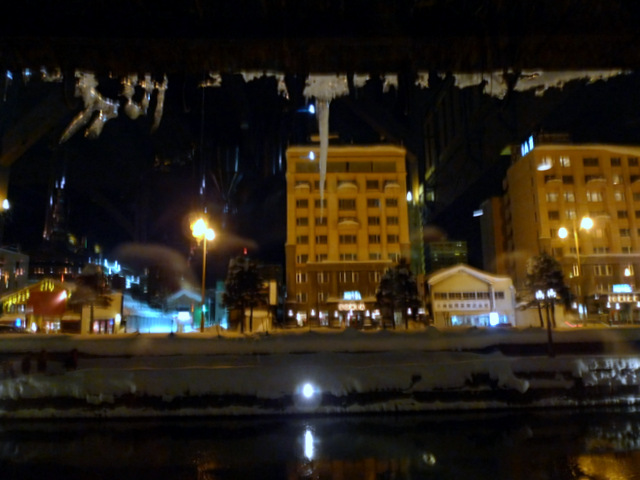 窓側の席から見える小樽運河。