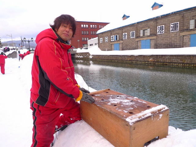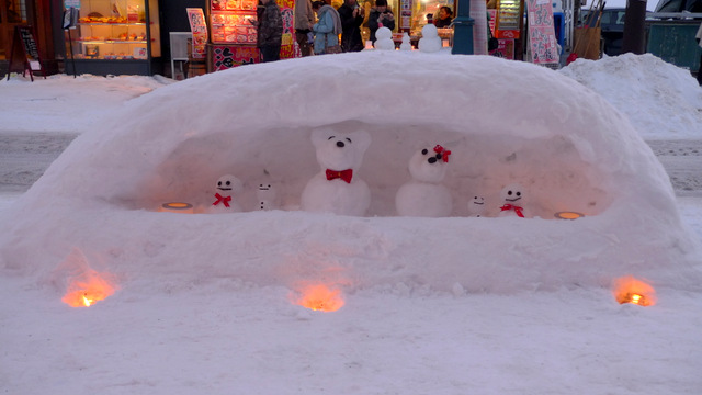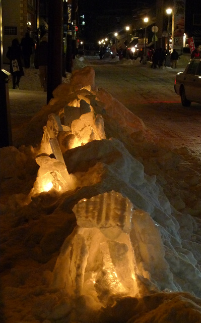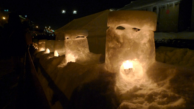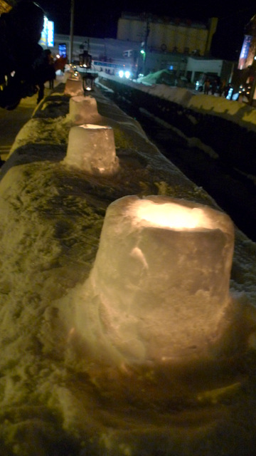スノーキャンドルを見ながら小樽運河をめざします。