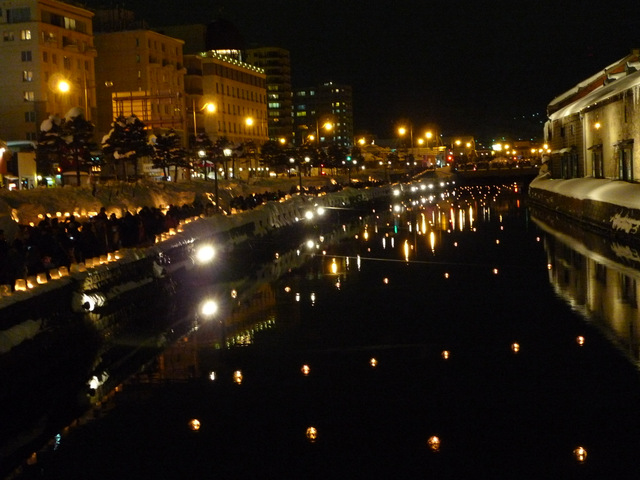 小樽運河と旧国鉄手宮線をメーン会場に、街のあちこちで"ろうそくの火"が揺れます。