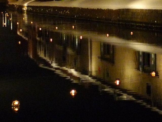 小樽運河にも「浮き玉キャンドル」に火が灯され、次々と水に浮かべられます。