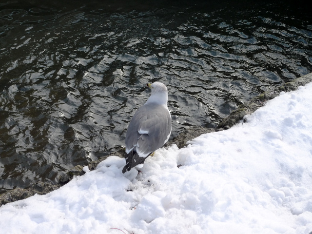 妙見川はいつもカモが愛嬌を振りまいていますが、海がすぐそこなのでカモメも!