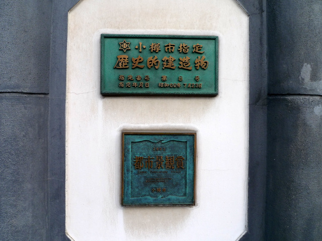 小樽市が指定する歴史的建造物には、プレートが付いています。