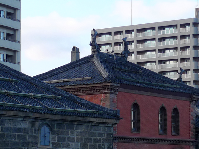 和洋折衷の造りで、瓦屋根の上には鯱(しゃちほこ)!