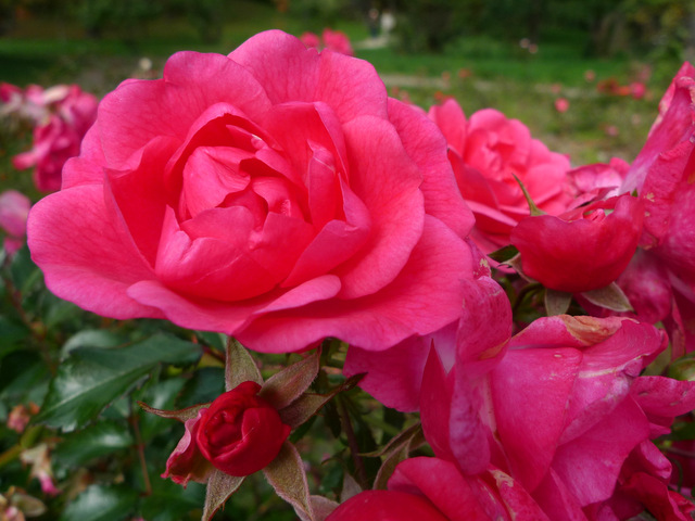 池と小川から少し離れると、バラが咲く花壇がありました。