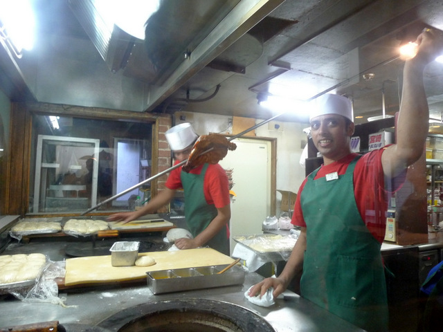 あまりにじっと見ている私にタンドリーチキンやナンを持ち上げて見せてくれるシェフさんたち。