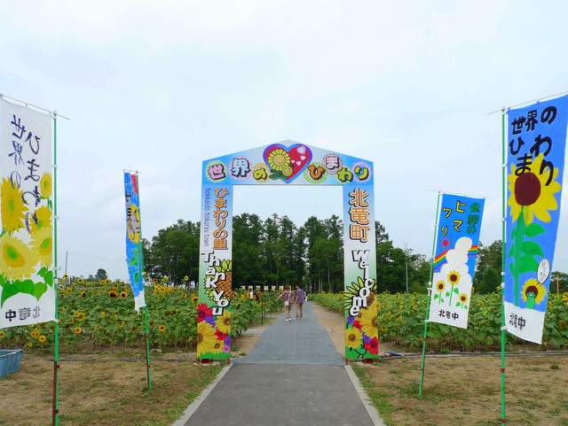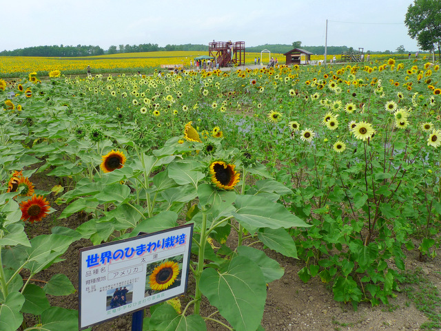 注目は、北竜中学校の生徒さんたちが育てた「世界のひまわり畑」。