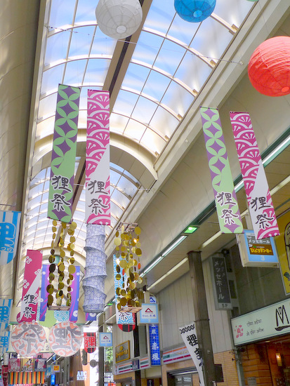 狸まつり開催中は狸小路一帯が祭りの飾りでいっぱい。