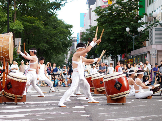 この時間帯は、札幌駅前通の大通公園からすすきの交差点までが歩行者天国となり、御輿渡御のほか北海道各地に伝わる和太鼓の演技などで祭りを盛り上げました。
