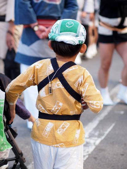 街は法被を着た人、浴衣姿の人、観客で溢れています。