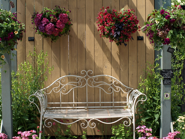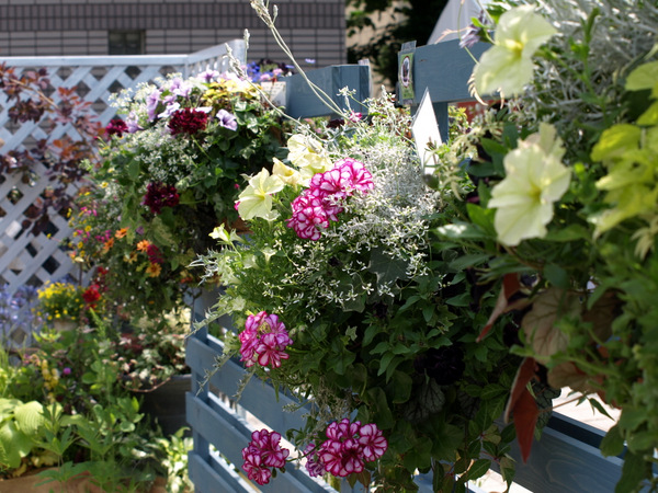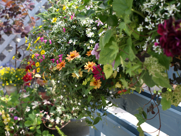カラフルな小花が散りばめられたハンギングバスケットは、たくさんの人の目を楽しませていました。