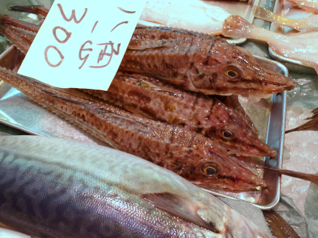 魚・野菜・肉・惣菜・和菓子・薬・など、いろいろ並んでいますが、メインはなんといっても鮮魚。