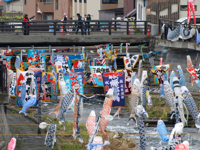 真砂橋からは、何人もの人が立ち止まって、こいのぼりを見たり、写真を撮ったりしていました。